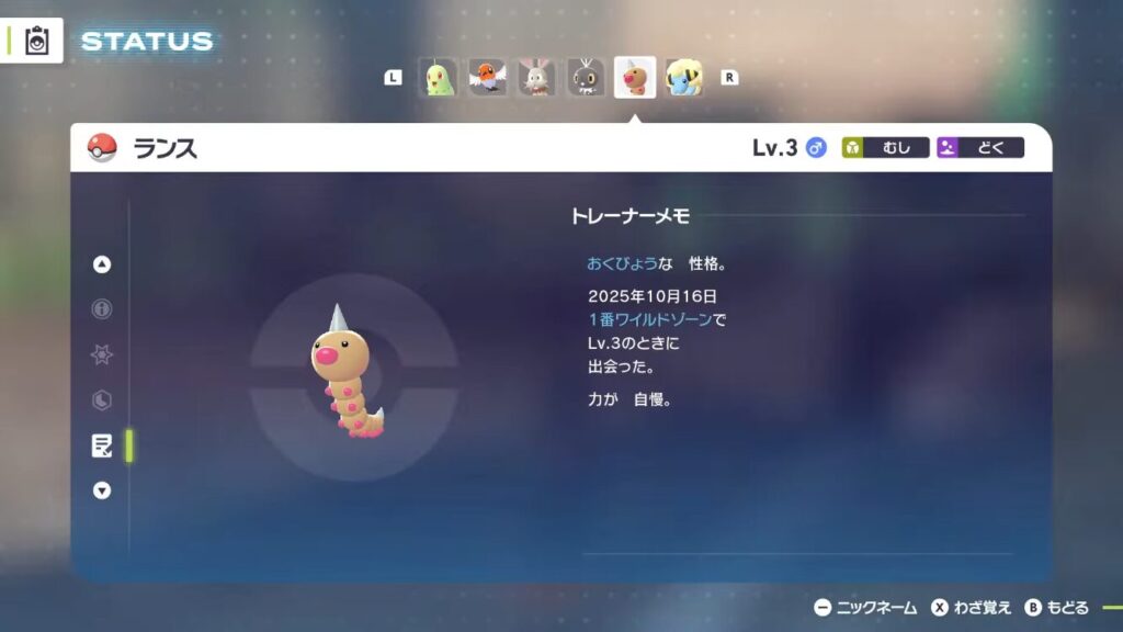 ここでは色々と捕まえたが、ビードルの「ランス」をパーティに入れることにした。