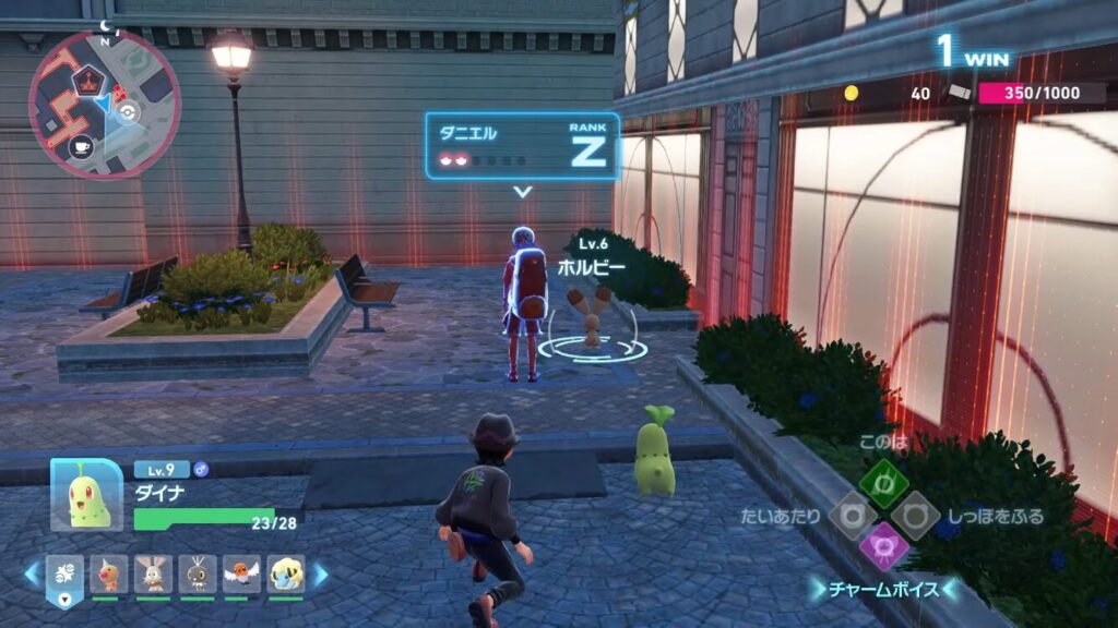 夜に出現する「バトルゾーン」でトレーナーを倒してポイントを集め、一定数溜まると「ランクアップ戦」に挑戦できる。